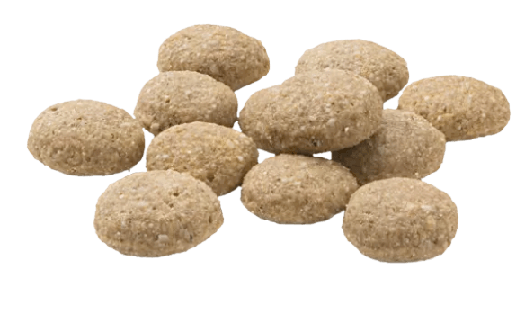 Tüm ırk köpeklerin tüketebileceği büyüklükte, diş sağlığını desteklemek için oldukça kıtır olan yüksek proteinli kuru mama.